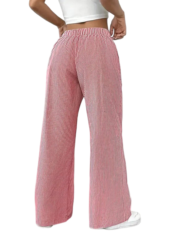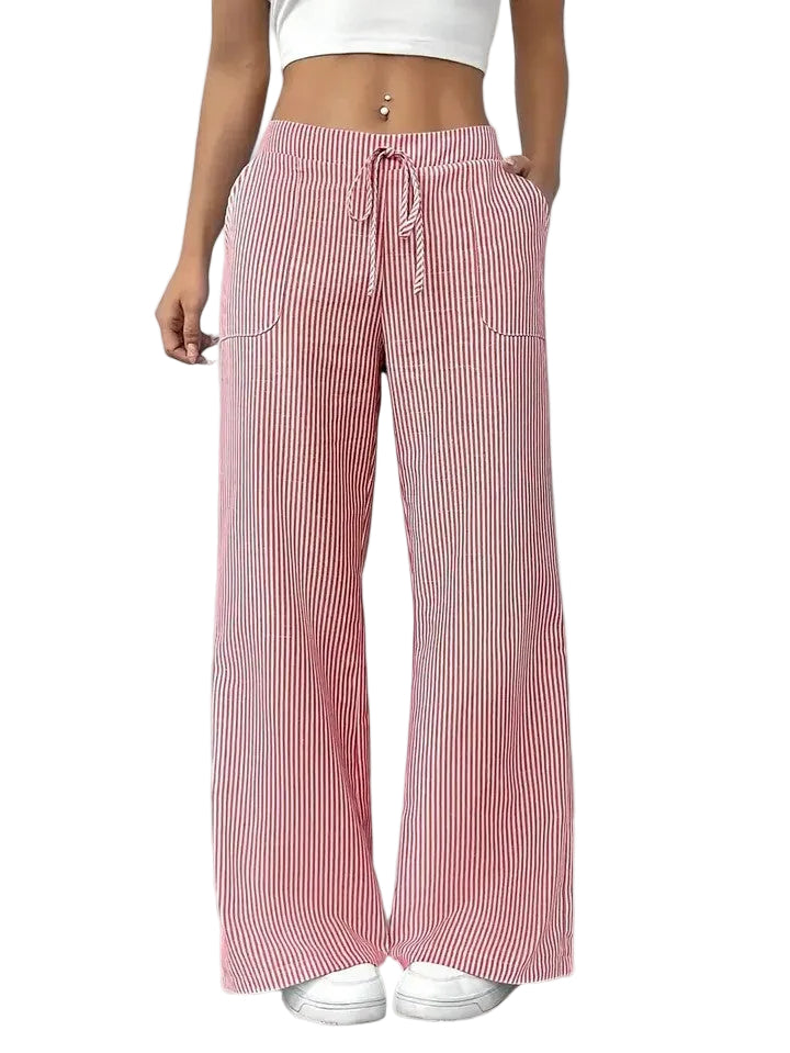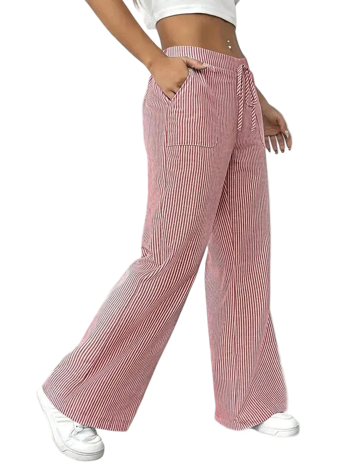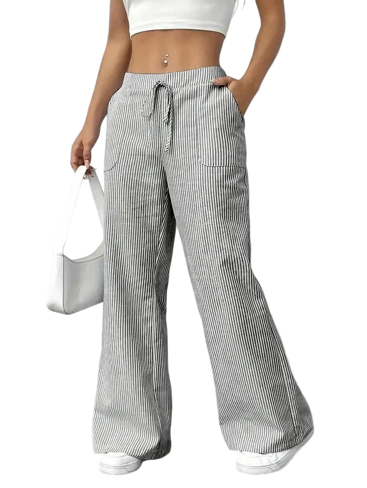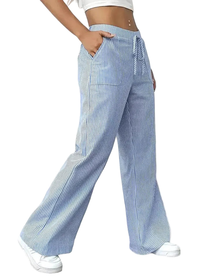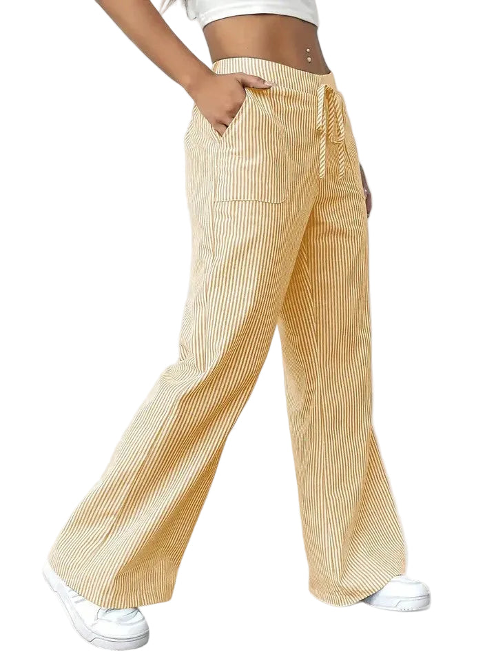 O padrão às riscas e a cintura com cordão ajustável dão um toque moderno e feminino, tornando-as ideais para looks práticos e cheios de estilo.