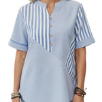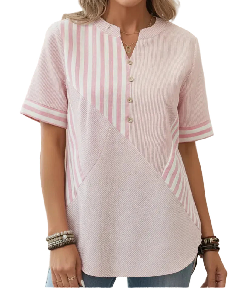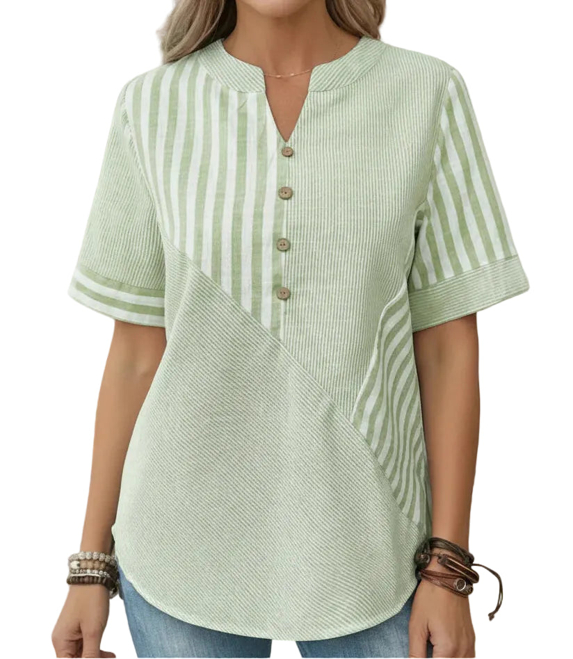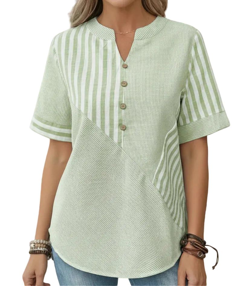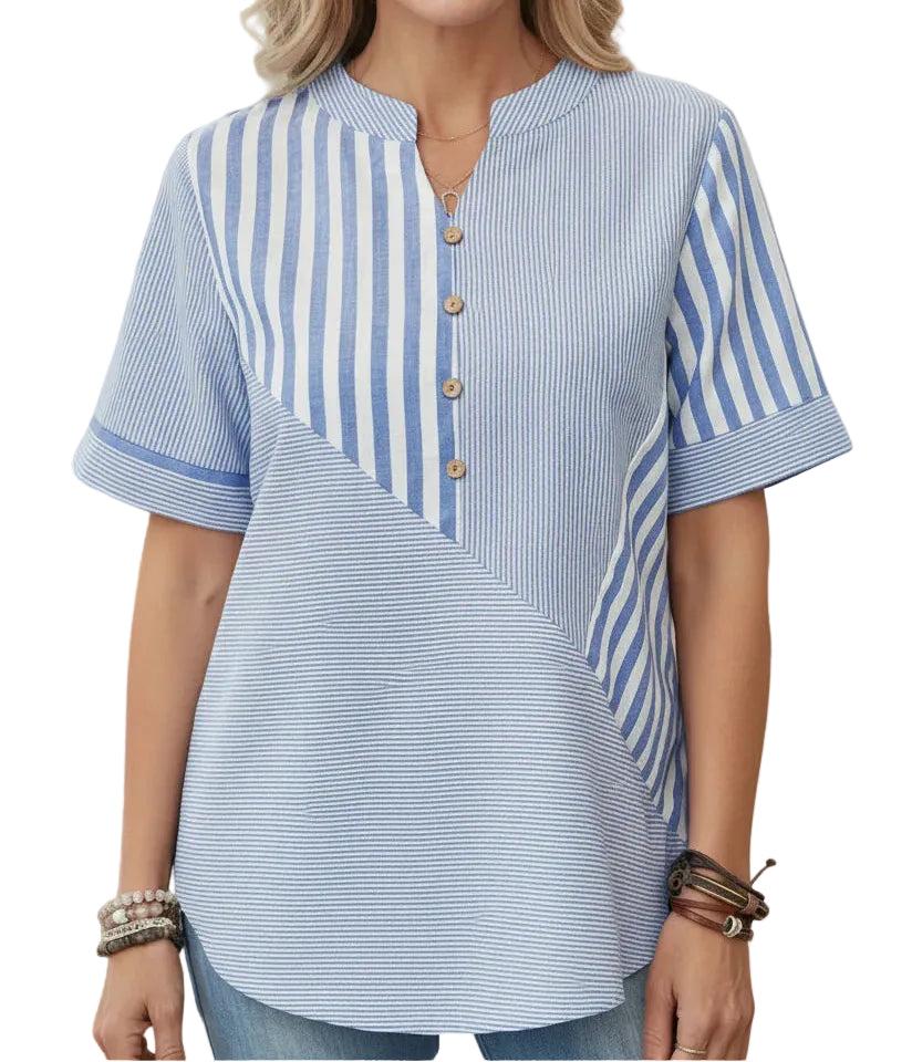 O corte fluido e o tecido leve proporcionam um caimento confortável e respirável, ideal para dias quentes. Uma blusa versátil que combina facilmente com jeans, calças ou saias para um look casual elegante.