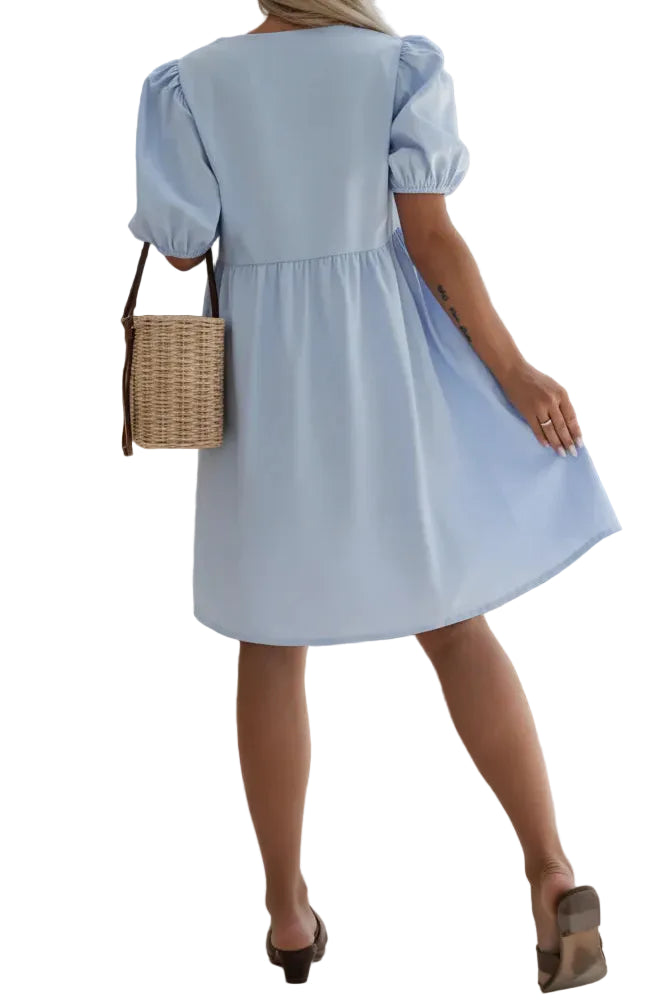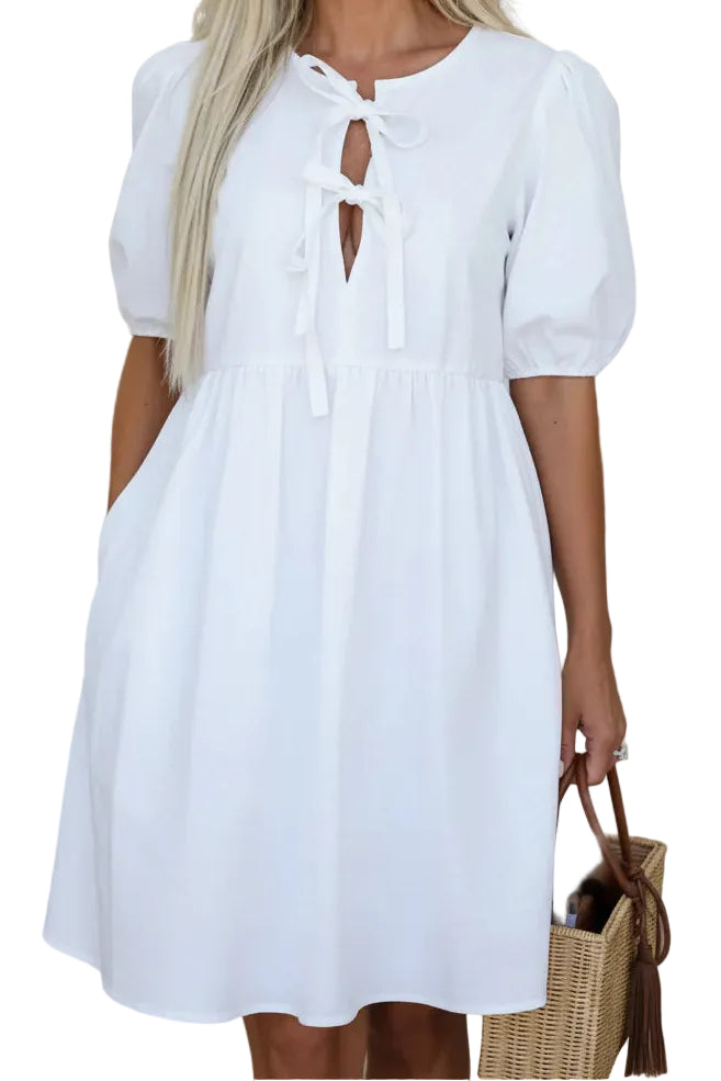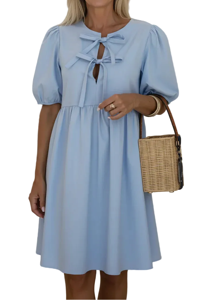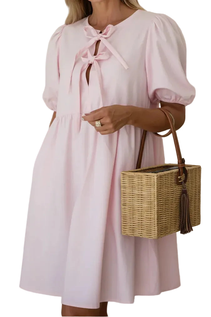 O ANASTASIA™ é um vestido delicado e feminino que combina elegância com um toque romântico. O seu design leve e fluido, juntamente com os laços frontais e mangas volumosas, cria um visual encantador e sofisticado.