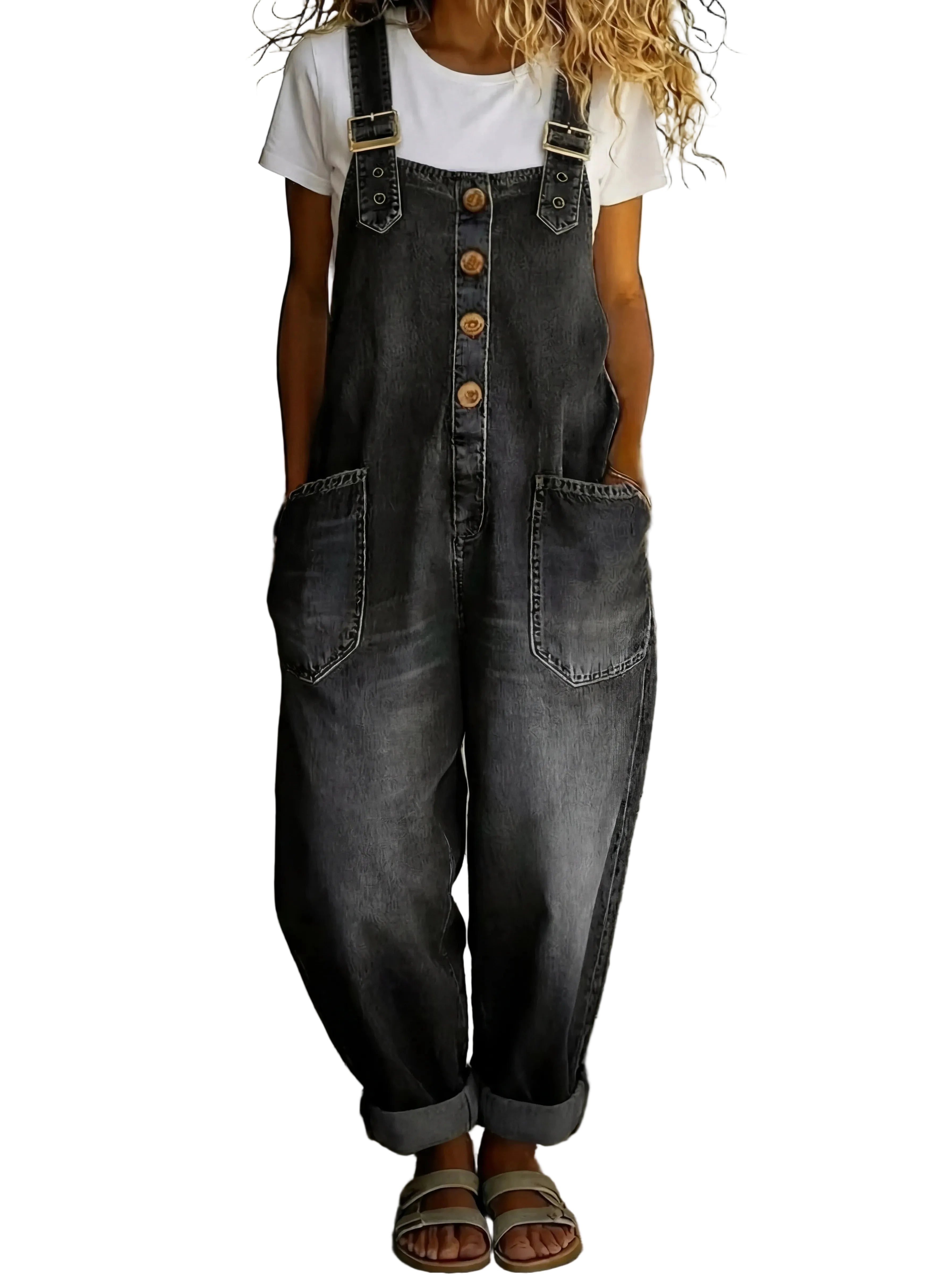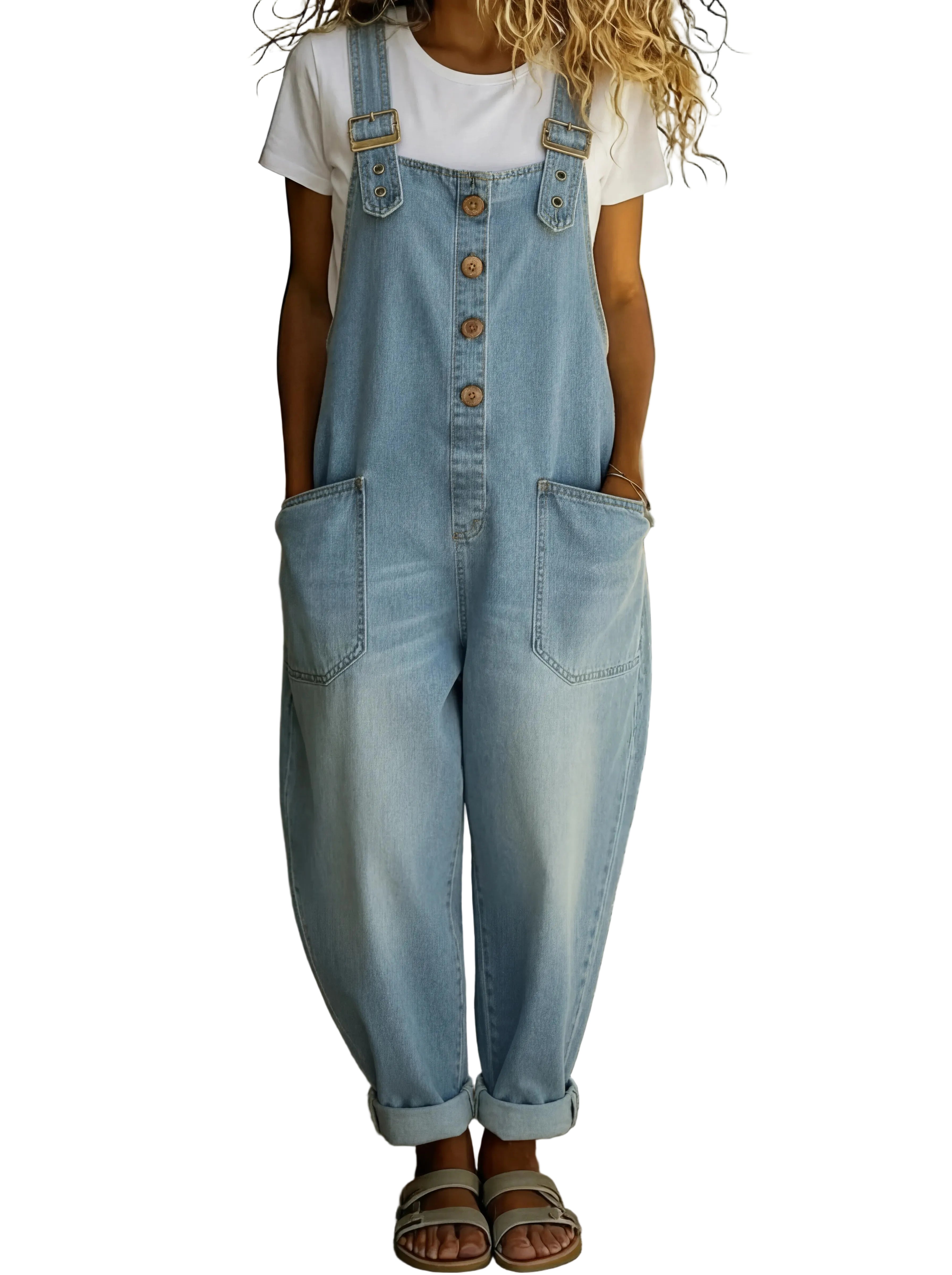 O ARIANA™ é um macacão denim moderno que combina conforto, praticidade e estilo casual. O seu design descontraído com botões frontais, alças ajustáveis e bolsos amplos cria um visual moderno e versátil, perfeito para o dia a dia.