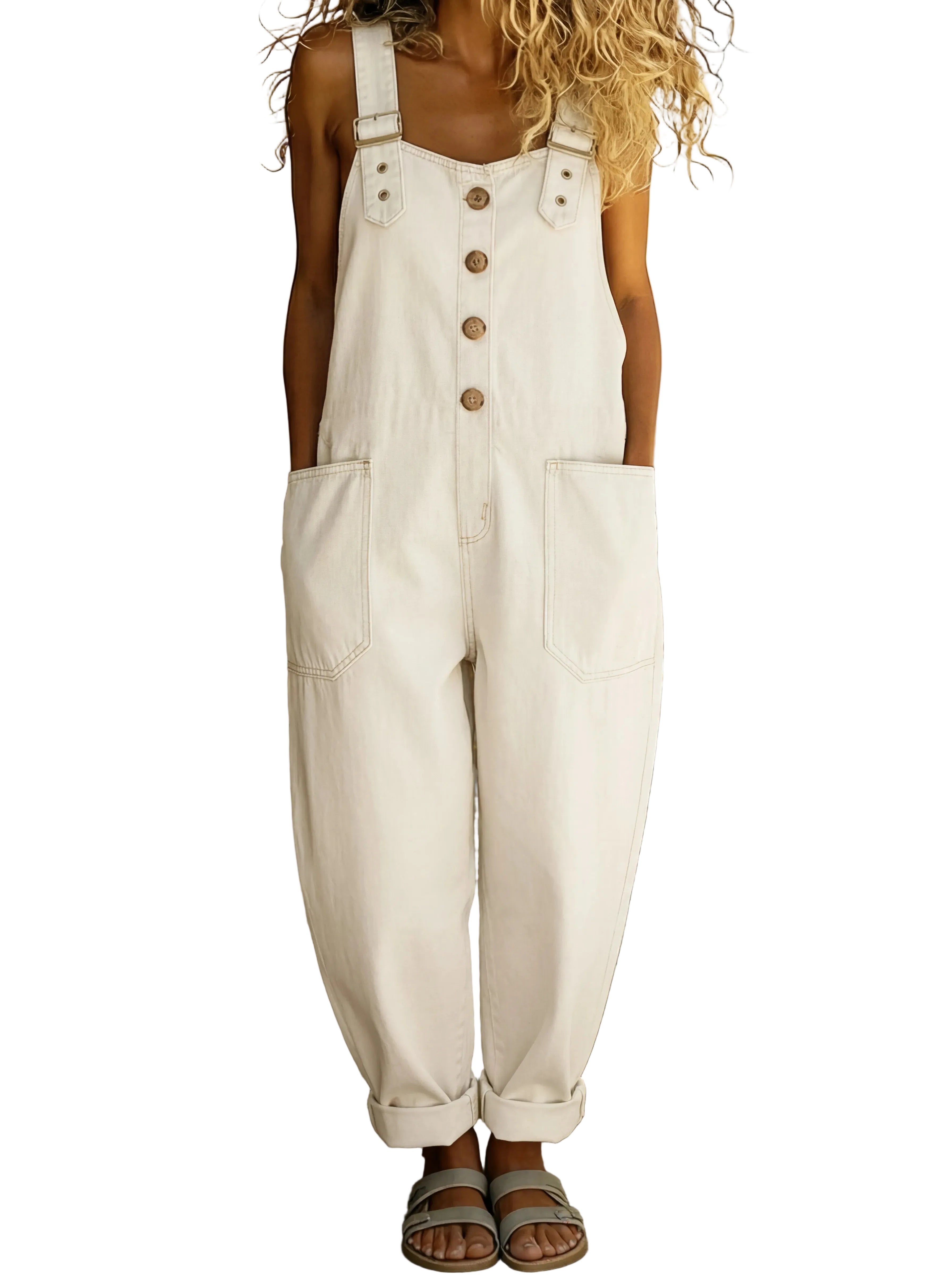 Ideal para passeios, viagens ou momentos de lazer, este macacão oferece um look confortável e cheio de personalidade que se adapta facilmente a diferentes estilos.